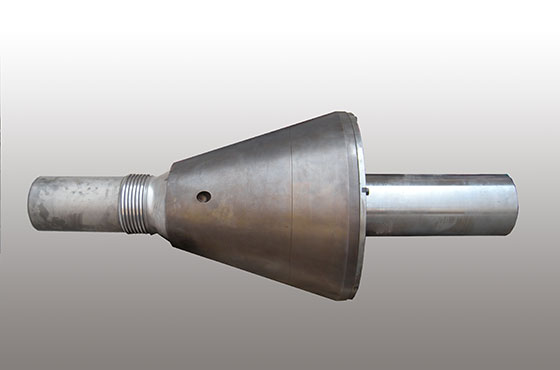 客戶HP500破碎機動錐體在更換襯板時發(fā)現(xiàn)鎖緊螺栓不能拆卸,運到我公司維修。由我司技術人員判定為動錐體內(nèi)螺紋損壞,同...